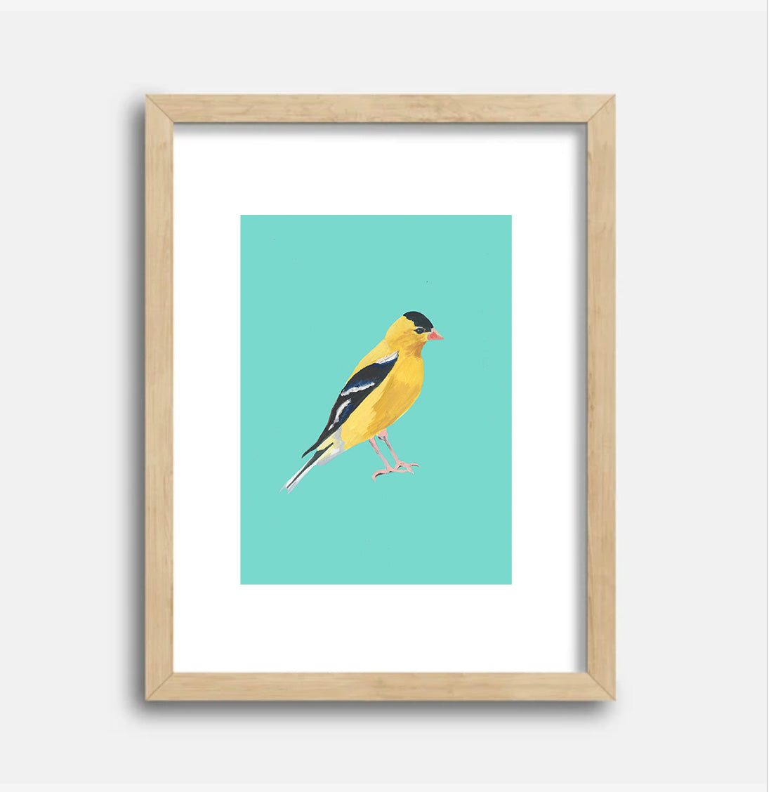 American Goldfinch,5x7 Print of Gouache Bird Painting.