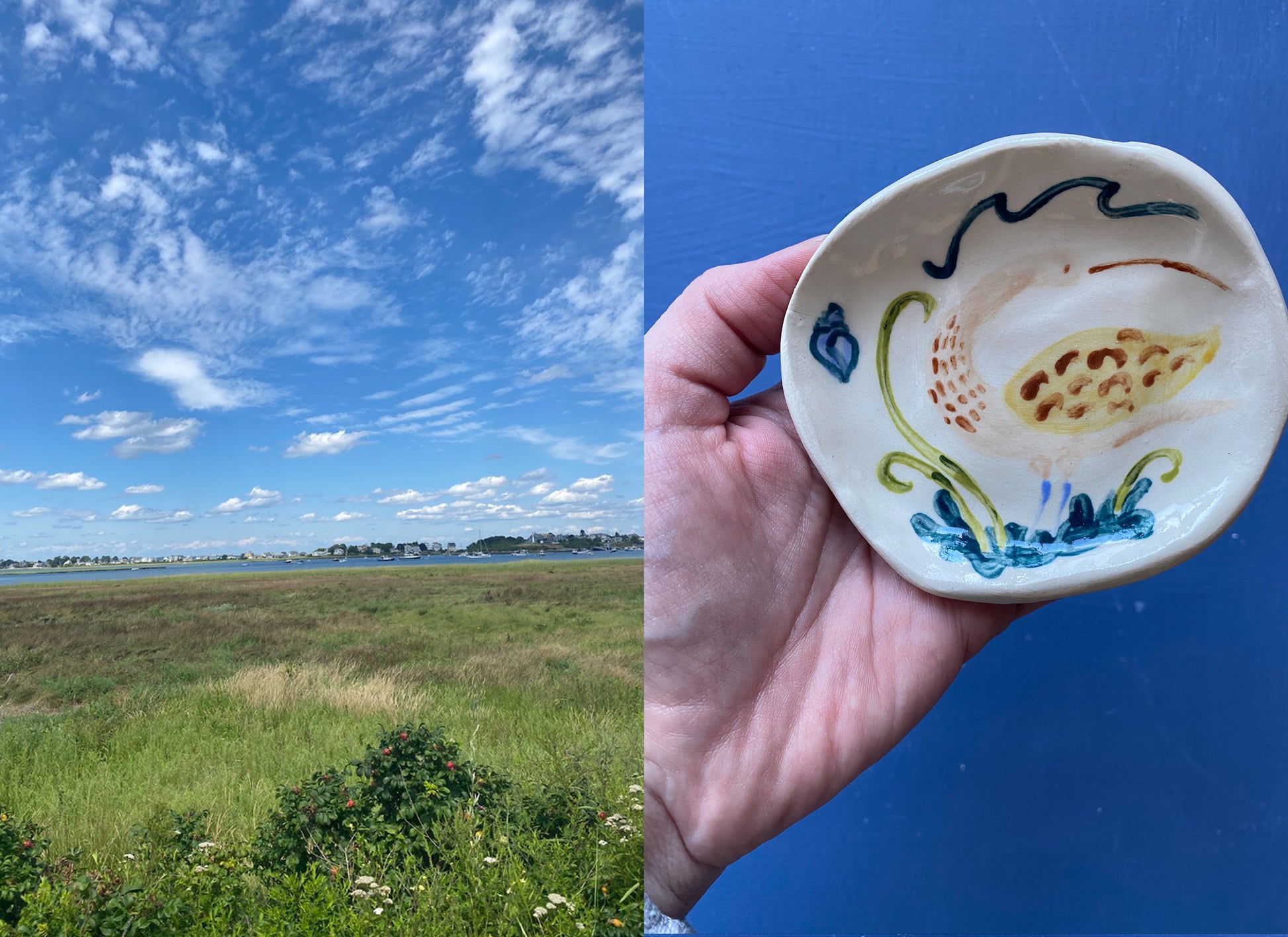 Hand-painted Curlew Jewelry Dish is inspired by the coastal birds.
