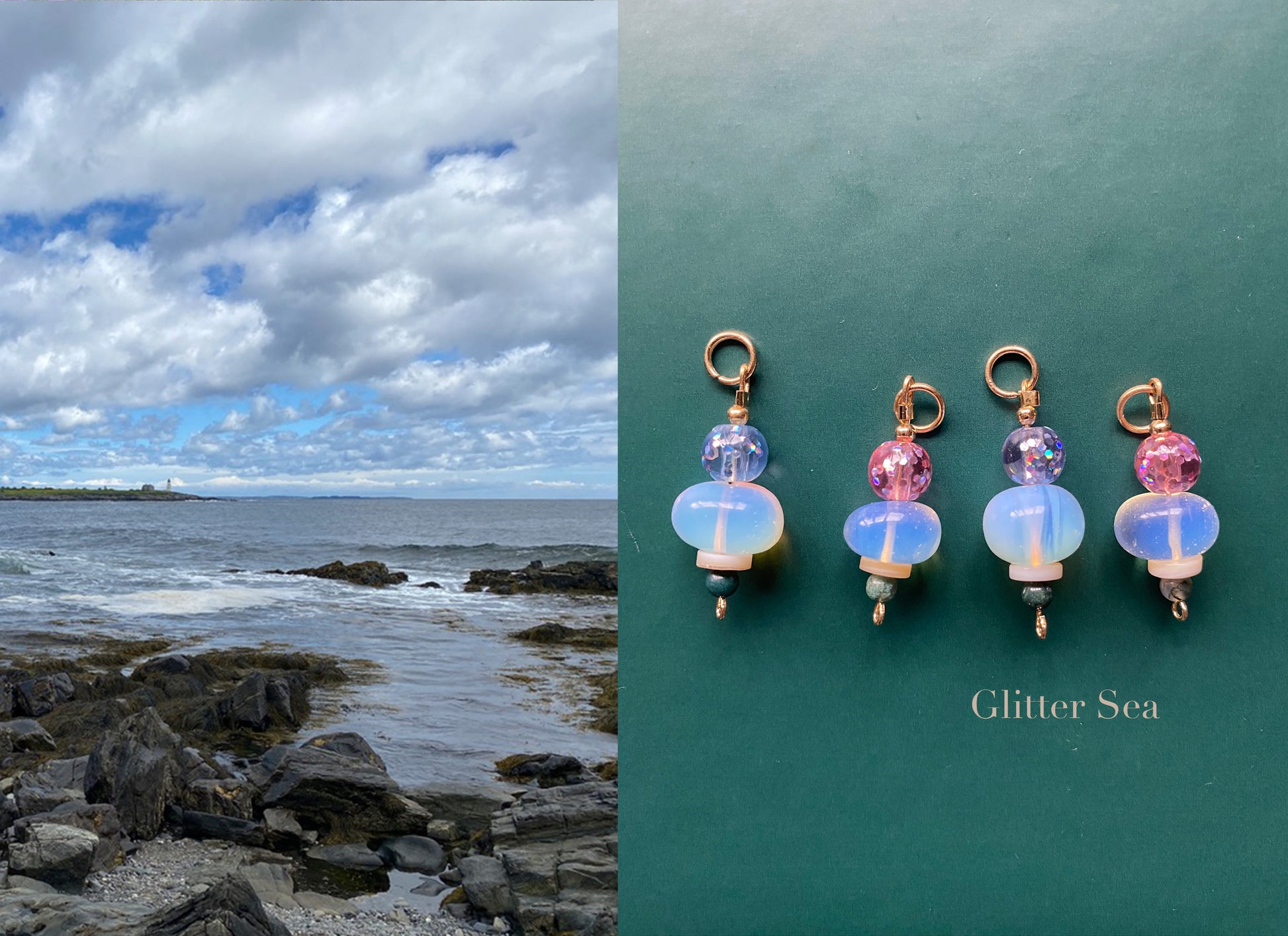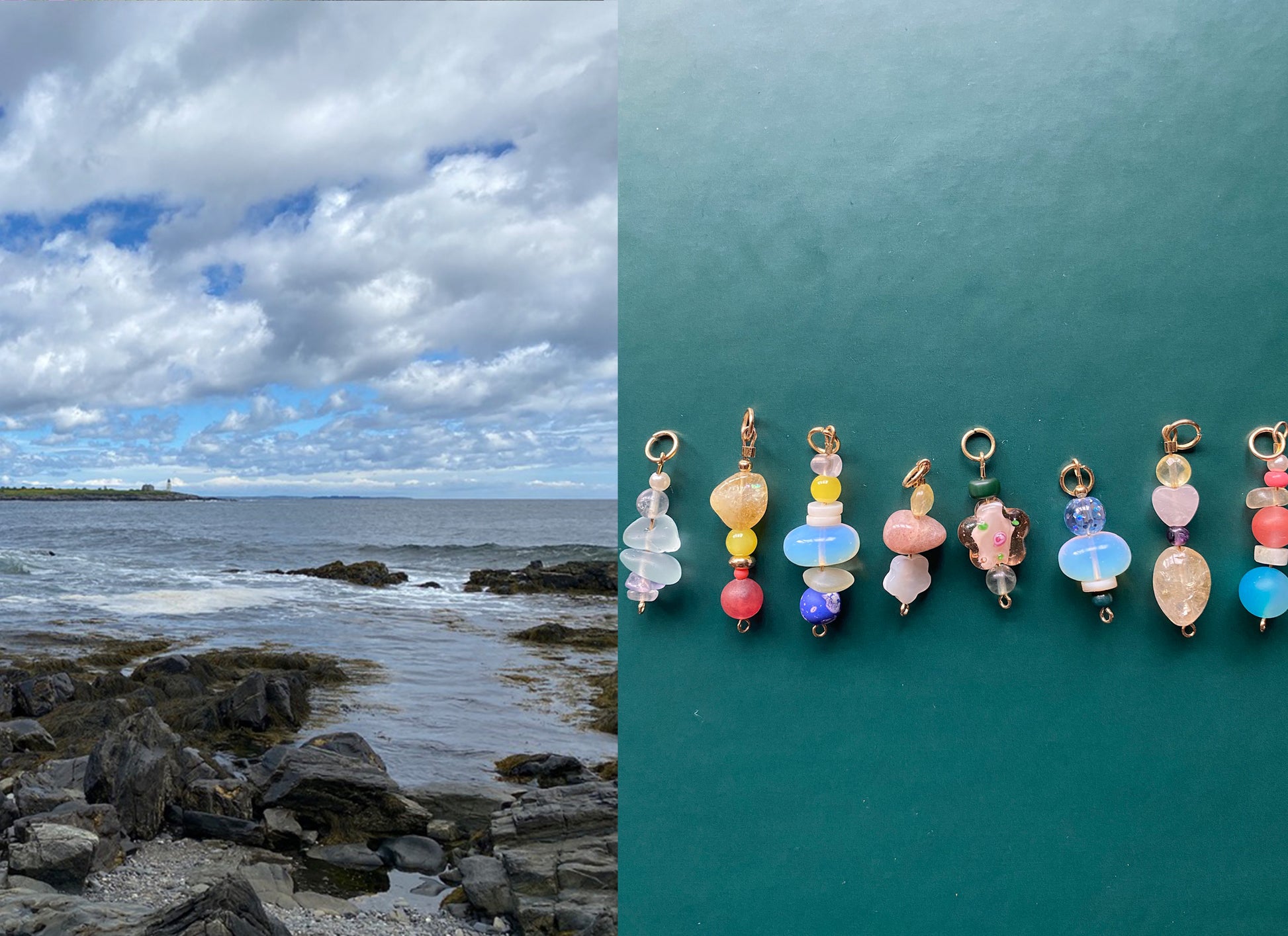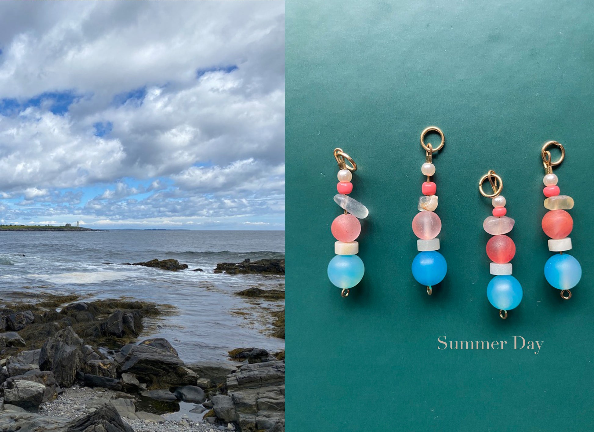 These hand beaded charms are inspired by Maine's coast and gardens. Mixed with a playful collection of beads, you can add these to any of our bag charms for a custom look!