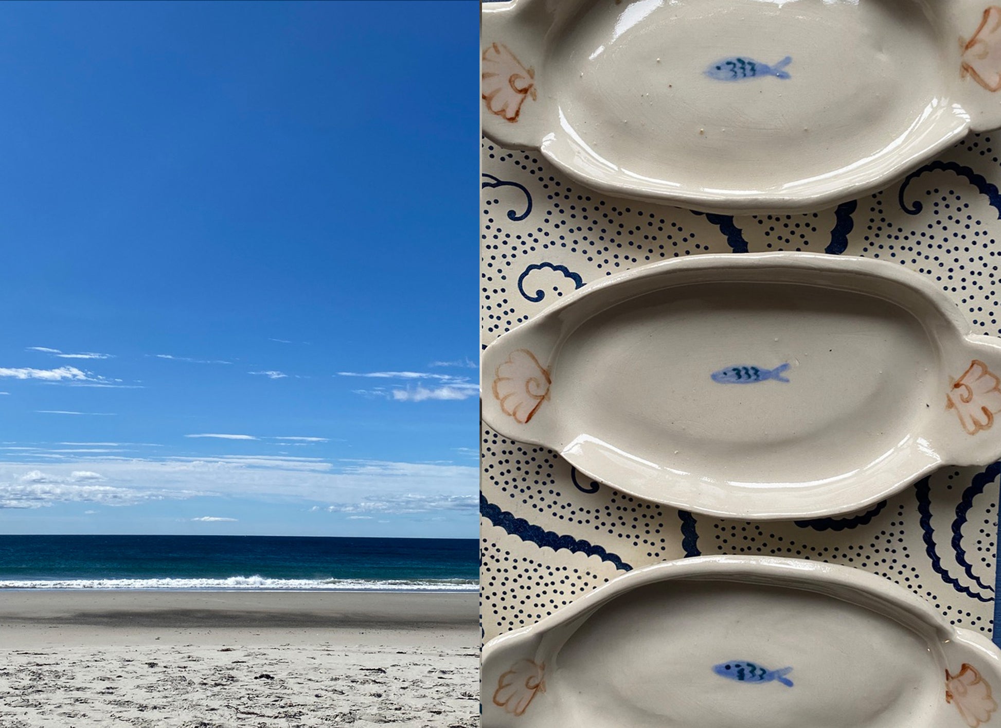 Hand-painted Fish + Anchor oval jewelry tray is inspired by the deep blue sea.