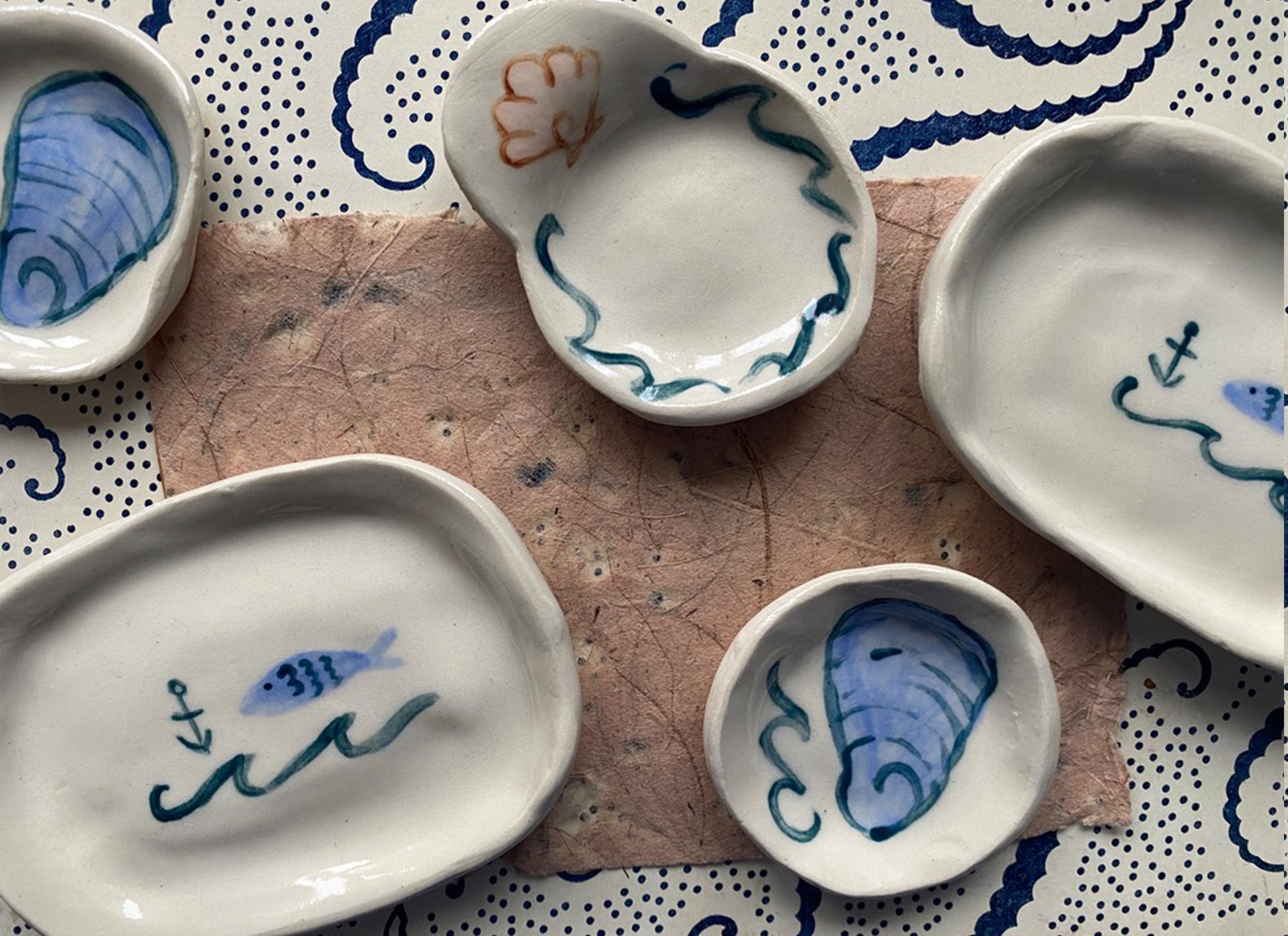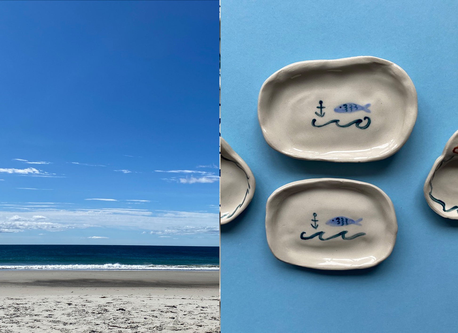 Hand-painted Fish + Anchor jewelry dish is inspired by the deep blue sea.