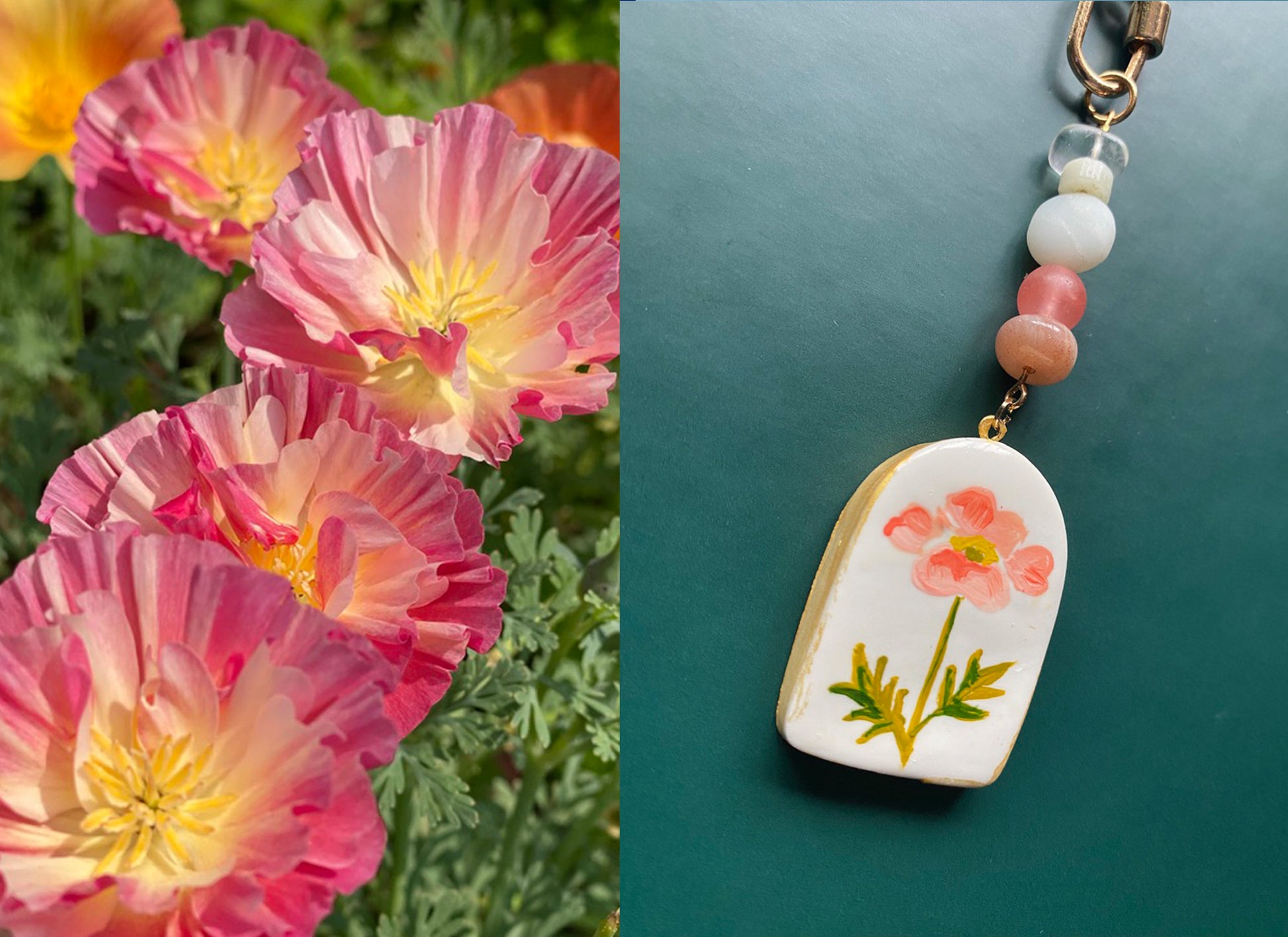 Our illustrated Poppy bag charm is inspired by the flower of remembrance. The poppy is hand-painted and sealed for durability with a combination of unique beads for a playful design that can be dressed up or down.