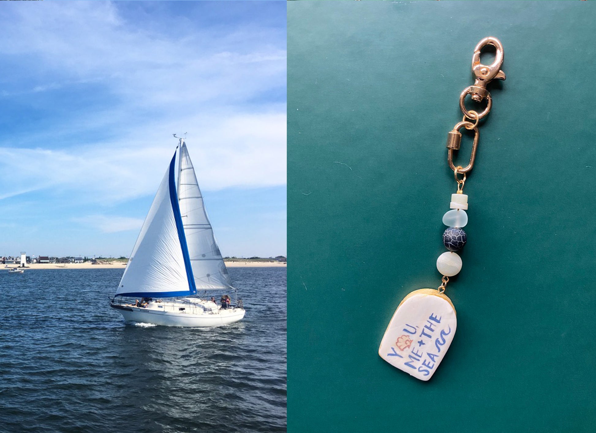 Our illustrated You, Me, + the Sea bag charm is inspired by the love of the ocean and the people we hold dear. This charm is hand-painted and sealed for durability with a combination of unique beads for a playful design that can be dressed up or down.
