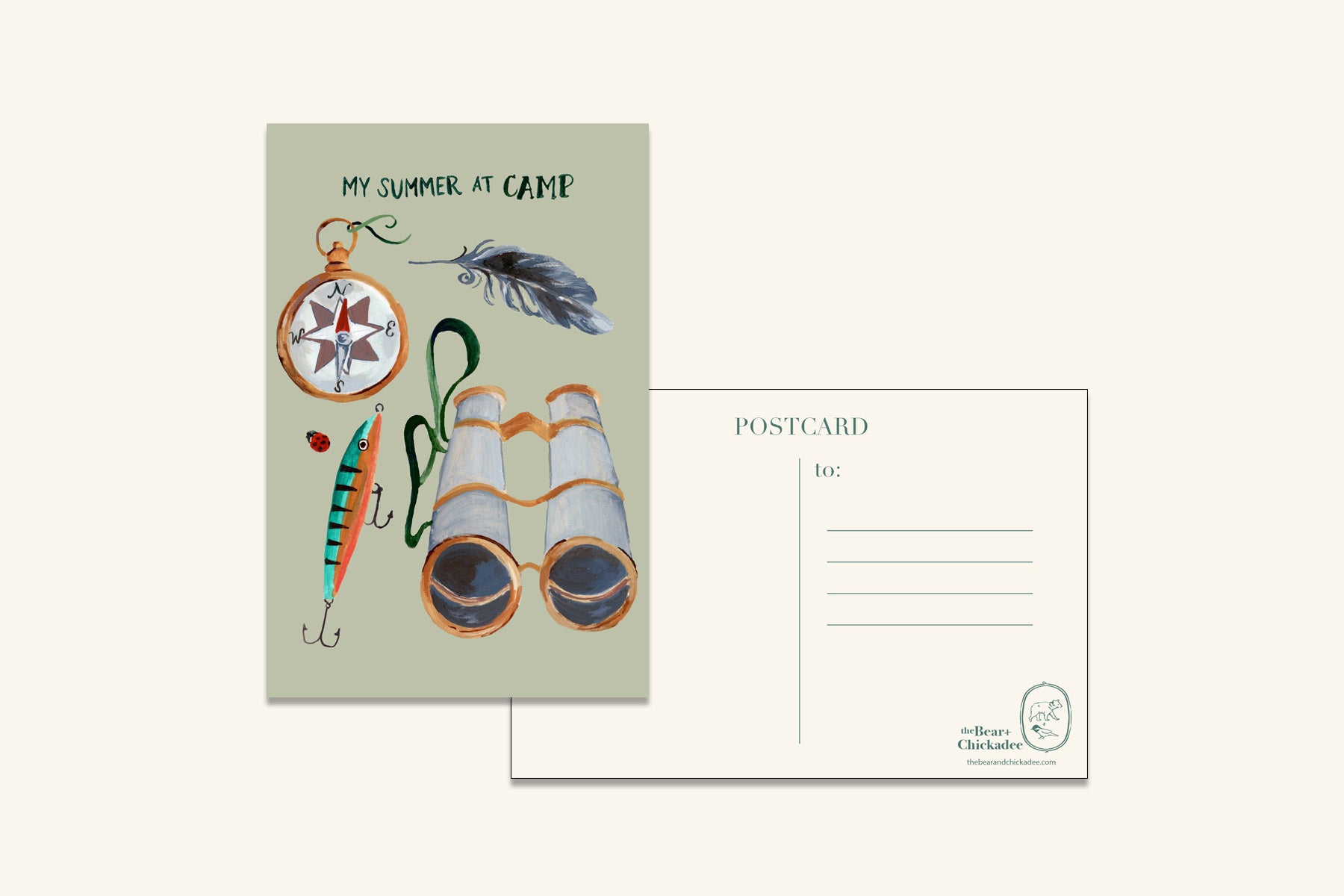Our Camp design was illustrated for the adventurer and camper. Whether away from family or on a family trip, this is a fun way to share a note on your outdoor adventures!