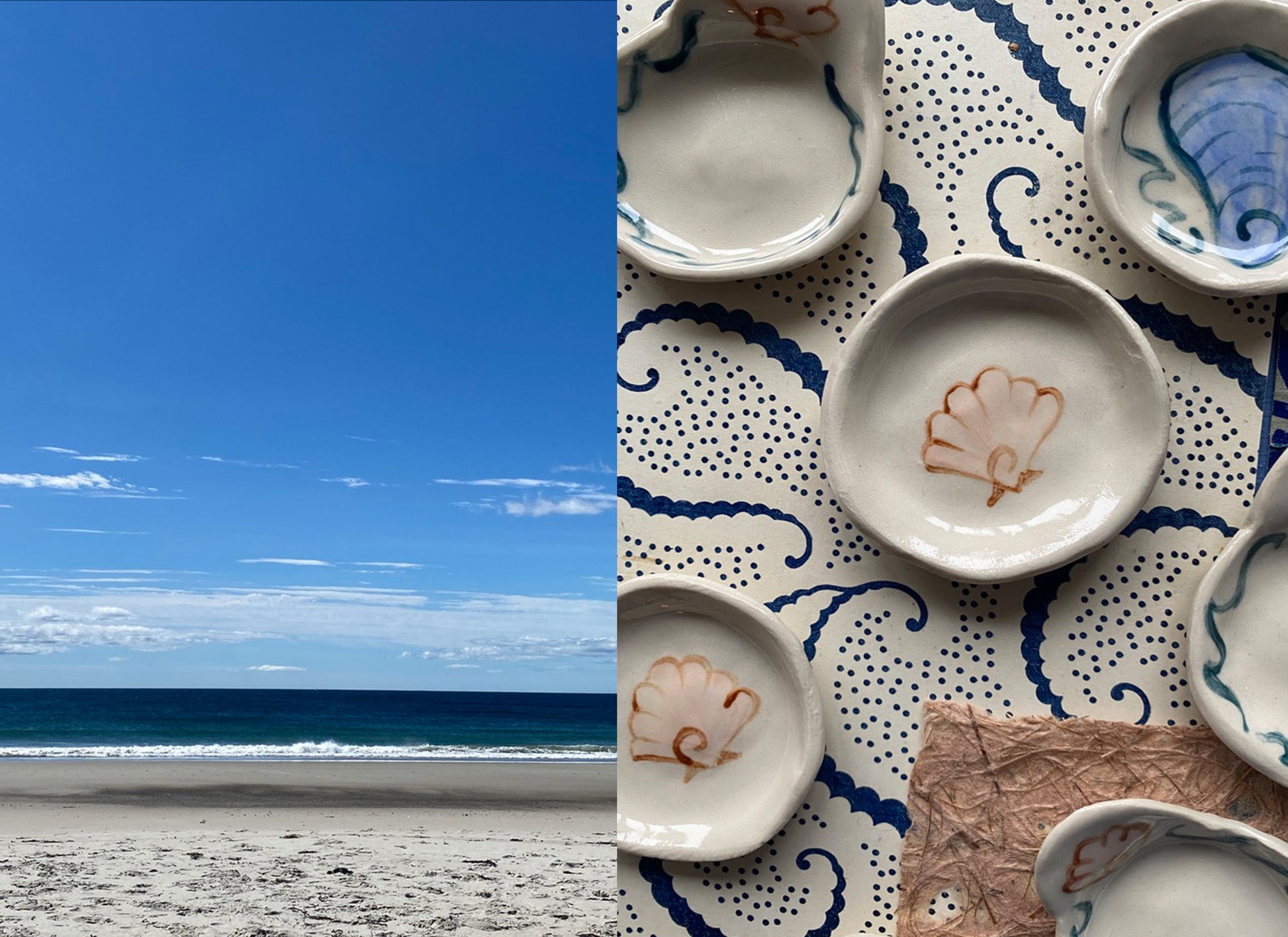 Hand-painted Shell ring dish is inspired by the calmness of the sandy shores.